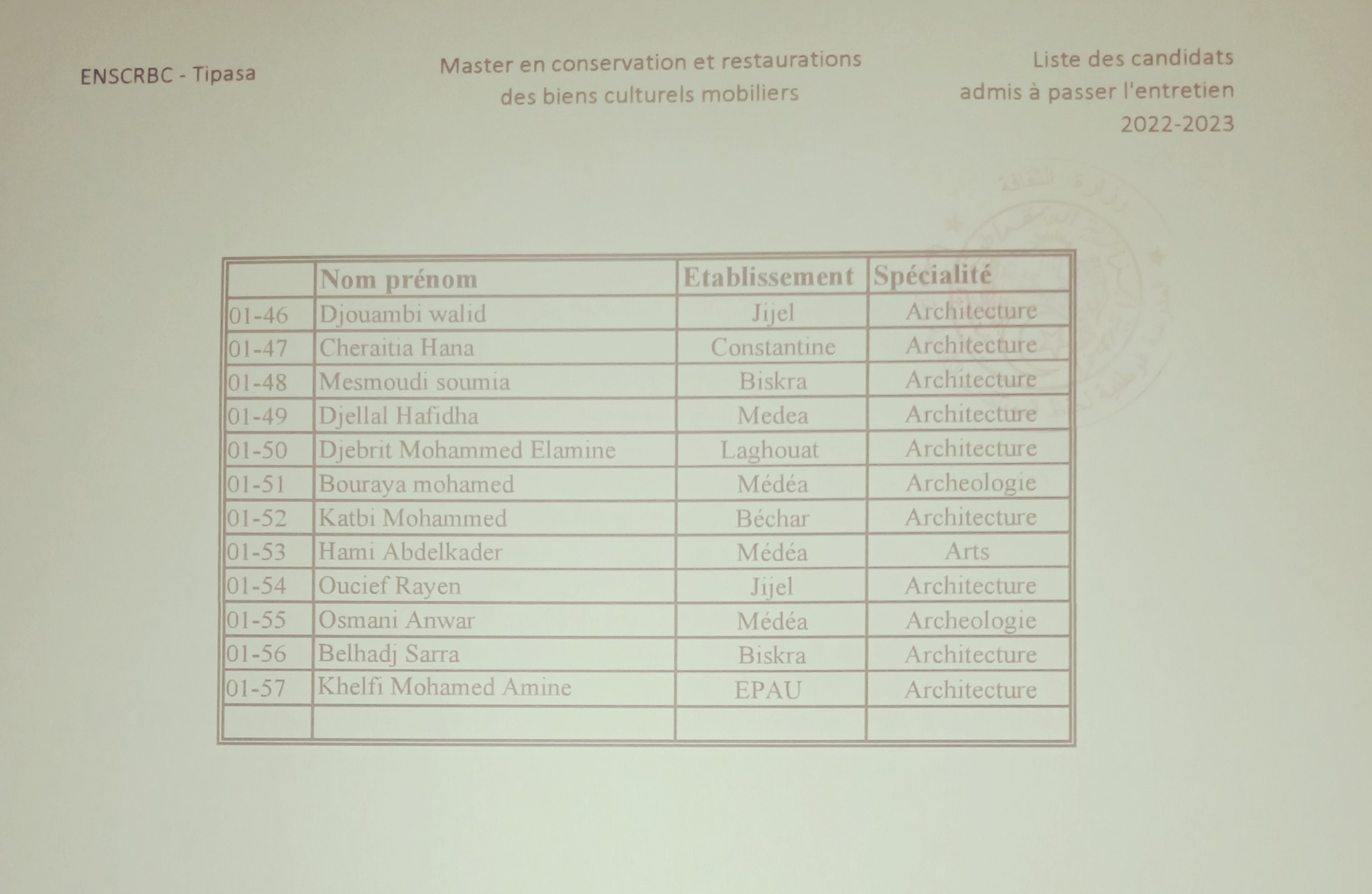 La liste des étudiants admis E.N.S.C.R.B.C. ACTUALITES 23 octobre 2022 Affichages : 4034 Rating: ( 0 Rating ) Veuillez voter Vote 1 Vote 2 Vote 3 Vote 4 Vote 5 La liste des étudiants admis à l’entretien le lundi 24 octobre 2022 de 9h00 à 15h00. Précédent Suivant