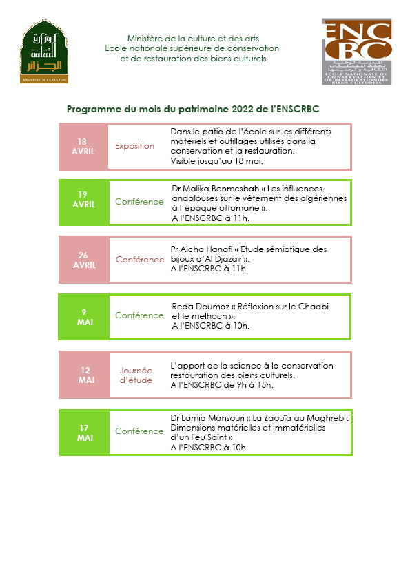 Les étudiants en master 2 sont actuellement impliqués dans divers travaux de conservation et de restauration réalisés par des spécialistes algériens et allemands dans le cadre de la coopération bilatérale algérienne-allemande pour la réhabilitation du musée.